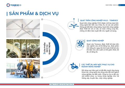 QU%u1ea0T TR%u1ea6N C%u00d4NG NGHI%u1ec6P HVLS - TOMEXCOQu%u1ea1t tr%u1ea7n c%u00f4ng nghi%u1ec7p HVLS %u0111%u01b0%u1ee3c ch%u1ebf t%u1ea1o d%u1ef1a tr%u00ean c%u00f4ng ngh%u1ec7 ti%u00ean ti%u1ebfn c%u1ee7a Ch%u00e2u %u00c2u v%u1ec1 c%u00e1c s%u1ea3n ph%u1ea9m th%u00f4ng gi%u00f3 ti%u1ebft ki%u1ec7m n%u0103ng l%u01b0%u1ee3ng. Qu%u1ea1t tr%u1ea7n c%u00f4ng nghi%u1ec7p %u0111%u01b0%u1ee3c thi%u1ebft k%u1ebf v%u1edbi c%u01a1 c%u1ea5u an to%u00e0n ch%u1ed1ng rung l%u1eafc, ch%u1ed1ng r%u01a1i %u0111%u1ea3m b%u1ea3o tuy%u1ec7t %u0111%u1ed1i cho ng%u01b0%u1eddi s%u1eed d%u1ee5ng.QU%u1ea0T C%u00d4NG NGHI%u1ec6PQu%u1ea1t c%u1ee7a Tomexco %u0111%u01b0%u1ee3c thi%u1ebft k%u1ebf d%u1ef1a tr%u00ean c%u00e1c nghi%u00ean c%u1ee9u v%u1ec1 kh%u00ed %u0111%u1ed9ng h%u1ecdc, %u0111%u01b0%u1ee3c ph%u00e2n t%u00edch ti%u1ebfng %u1ed3n ngay khi t%u00ednh to%u00e1n thi%u1ebft k%u1ebf n%u00ean khi %u0111%u01b0a v%u00e0o s%u1ea3n xu%u1ea5t c%u00f3 th%u1ec3 gi%u1ea3m thi%u1ec3u t%u1ed1i %u0111a v%u1ec1 ti%u1ebfng %u1ed3n.C%u00c1C THI%u1ebeT B%u1eca, M%u00c1Y M%u00d3C PH%u1ee4C V%u1ee4 CHO NG%u00c0NH N%u00d4NG NGHI%u1ec6P%u0110%u1ec3 n%u00e2ng cao hi%u1ec7u qu%u1ea3 v%u00e0 %u0111%u00e3 %u0111%u1ea9y m%u1ea1nh %u1ee9ng d%u1ee5ng khoa h%u1ecdc, c%u00f4ng ngh%u1ec7 v%u00e0o c%u00f4ng cu%u1ed9c %u0111%u1ed5i m%u1edbi ng%u00e0nh n%u00f4ng nghi%u1ec7p c%u1ee7a %u0111%u1ea5t n%u01b0%u1edbc. C%u00f4ng ty cho ra %u0111%u1eddi c%u00e1c s%u1ea3n ph%u1ea9m ph%u1ee5c v%u1ee5 trong n%u00f4ng nghi%u1ec7p nh%u01b0: h%u1ec7 th%u1ed1ng s%u1ea5y, truy%u1ec1n li%u1ec7u, m%u00e1y n%u00f4ng nghi%u1ec7p.3 S%u1ea2N PH%u1ea8M D%u1ecaCH V%u1ee4 QUAN TR%u1eccNG| S%u1ea2N PH%u1ea8M & D%u1ecaCH V%u1ee4S%u1ea2N PH%u1ea8M - D%u1ecaCH V%u1ee4 12C%u00d4NG TY CP %u0110I%u1ec6N C%u01a0 V%u00c0 XNK TO%u00c0N C%u1ea6U