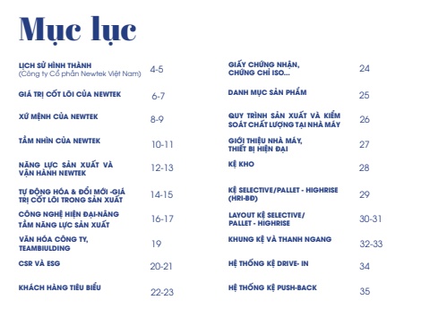 M%u1ee5c l%u1ee5cT%u1ea6M NH%u00ccN C%u1ee6A NEWTEK GI%u1edaI THI%u1ec6U NH%u00c0 M%u00c1Y, THI%u1ebeT B%u1eca HI%u1ec6N %u0110%u1ea0IV%u0102N H%u00d3A C%u00d4NG TY,TEAMBIULDINGKHUNG K%u1ec6 V%u00c0 THANH NGANGKH%u00c1CH H%u00c0NG TI%u00caU BI%u1ec2U H%u1ec6 TH%u1ed0NG K%u1ec6 PUSH-BACKX%u1ee8 M%u1ec6NH C%u1ee6A NEWTEK QUY TR%u00ccNH S%u1ea2N XU%u1ea4T V%u00c0 KI%u1ec2M SO%u00c1T CH%u1ea4T L%u01af%u1ee2NG T%u1ea0I NH%u00c0 M%u00c1YC%u00d4NG NGH%u1ec6 HI%u1ec6N %u0110%u1ea0I-N%u00c2NG T%u1ea6M N%u0102NG L%u1ef0C S%u1ea2N XU%u1ea4TLAYOUT K%u1ec6 SELECTIVE/PALLET - HIGHRISE CSR V%u00c0 ESG H%u1ec6 TH%u1ed0NG K%u1ec6 DRIVE- INGI%u00c1 TR%u1eca C%u1ed0T L%u00d5I C%u1ee6A NEWTEK DANH M%u1ee4C S%u1ea2N PH%u1ea8MT%u1ef0 %u0110%u1ed8NG H%u00d3A & %u0110%u1ed4I M%u1edaI -GI%u00c1 TR%u1eca C%u1ed0T L%u00d5I TRONG S%u1ea2N XU%u1ea4TK%u1ec6 SELECTIVE/PALLET - HIGHRISE (HRI-B%u0110)L%u1ecaCH S%u1eec H%u00ccNH TH%u00c0NH (C%u00f4ng ty C%u1ed5 ph%u1ea7n Newtek Vi%u1ec7t Nam)GI%u1ea4Y CH%u1ee8NG NH%u1eacN,CH%u1ee8NG CH%u1ec8 ISO...N%u0102NG L%u1ef0C S%u1ea2N XU%u1ea4T V%u00c0 V%u1eacN H%u00c0NH NEWTEKK%u1ec6 KHO4-5 2412-13 2810-11 2719 32-3322-23 358-9 2616-17 30-3120-21 34 6-7 2514-15 29